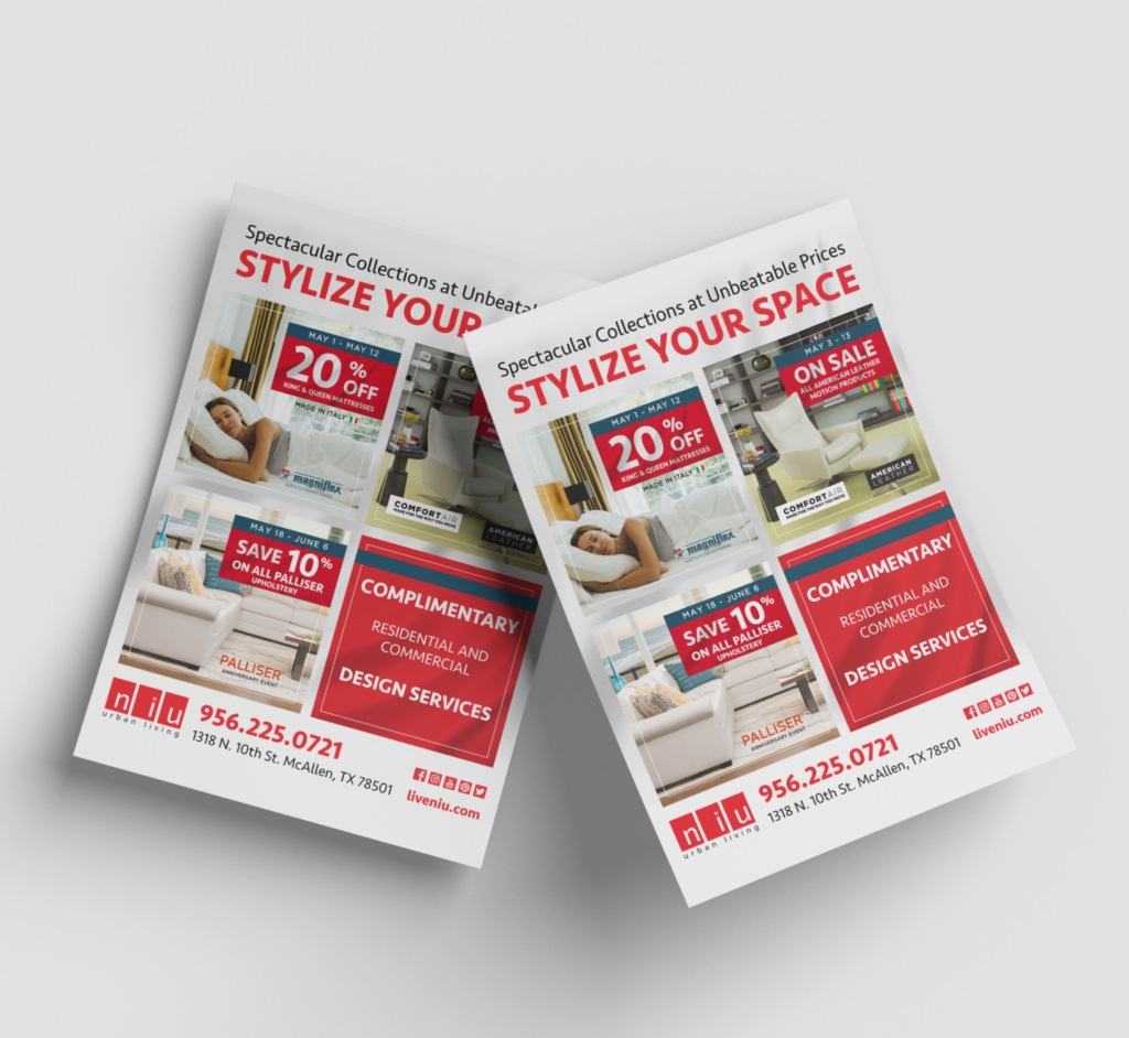 NIU Urban Living had a large inventory of exciting designer furniture they wanted to offer to the Rio Grande Valley, but they had limited options for promoting themselves within the RGV. They needed a way to expand their marketing reach among their target audiences. They also wanted a way to promote their special sales and offers while maintaining the consistency of their brand. To get a marketing partner they could trust long-term, they turned to CODESM.